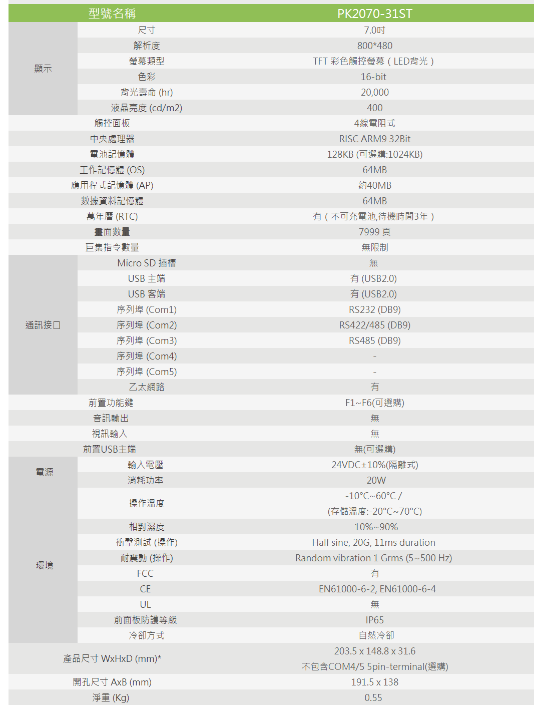 屏通人机PK2070-31ST
