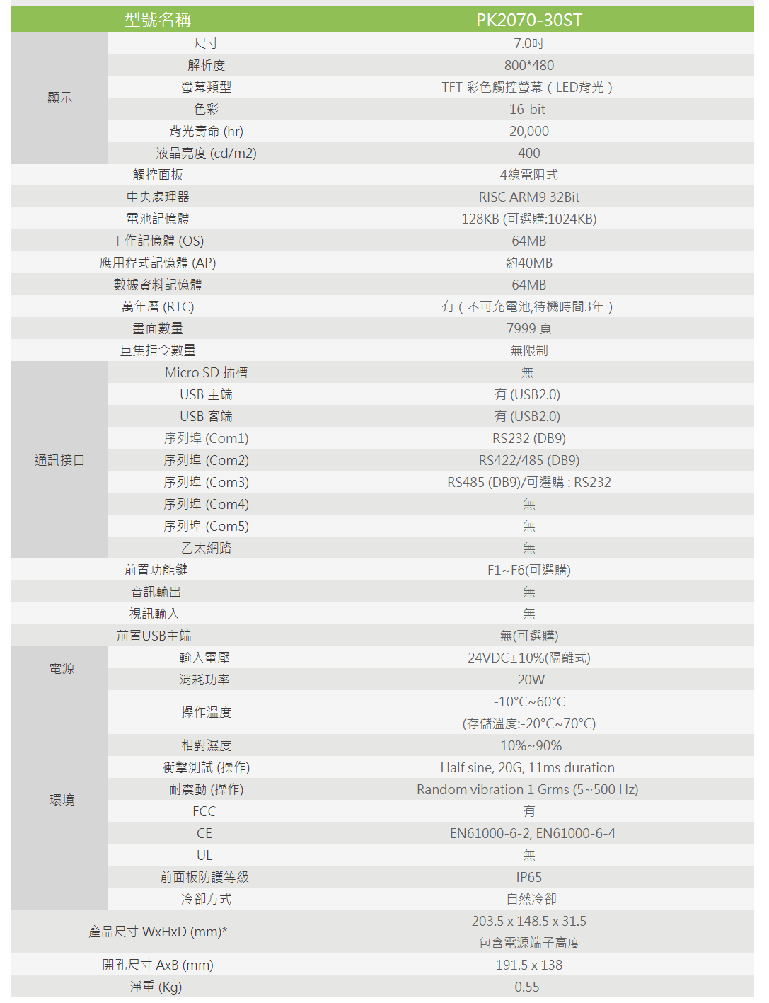 屏通人机PK2070-30ST